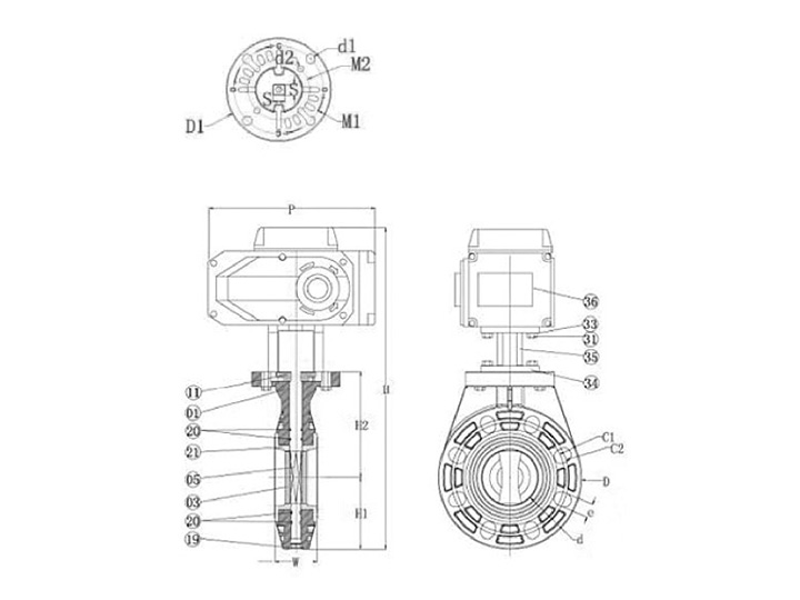 | SIZE | d | C1 | C2 | H | H1 | H2 | D | D1 | M | M1 | d1 | d2 | s | w | P | n-e |