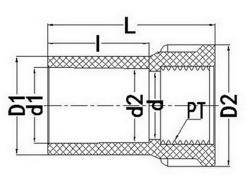 | SIZE | d1 | d2 | I | D1 | D2 | d | L | PT(牙/寸) |